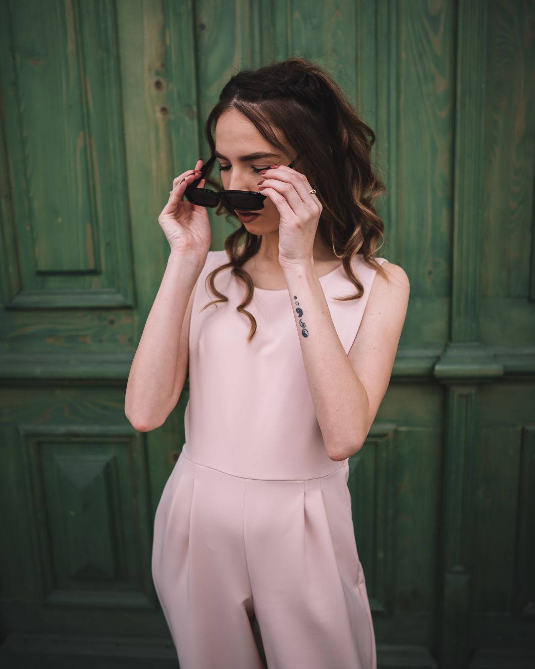 Salopetă în stil elegant-lejer, realizată din crep imperial.