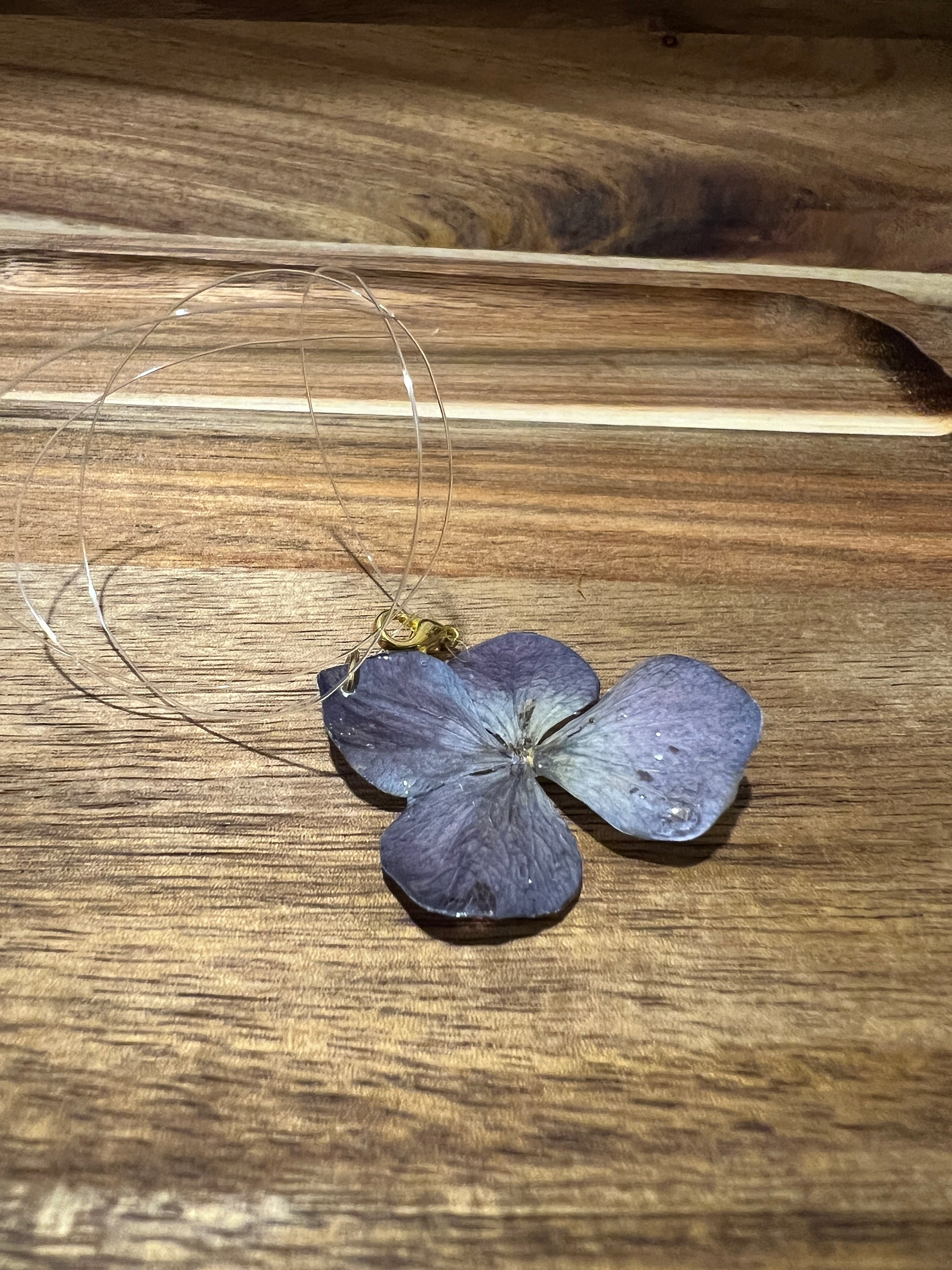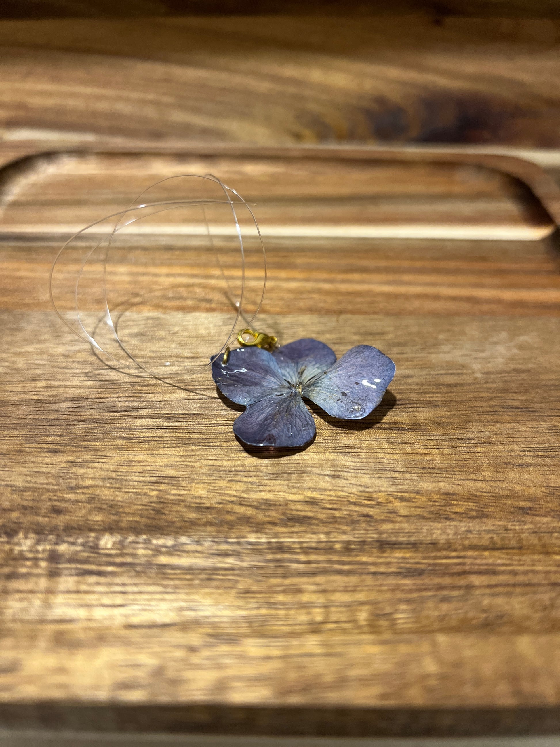 A wearable keepsake of nature’s fragility and charm, in a delicate necklace featuring a real blue hydrangea petal, carefully preserved in crystal-clear resin.